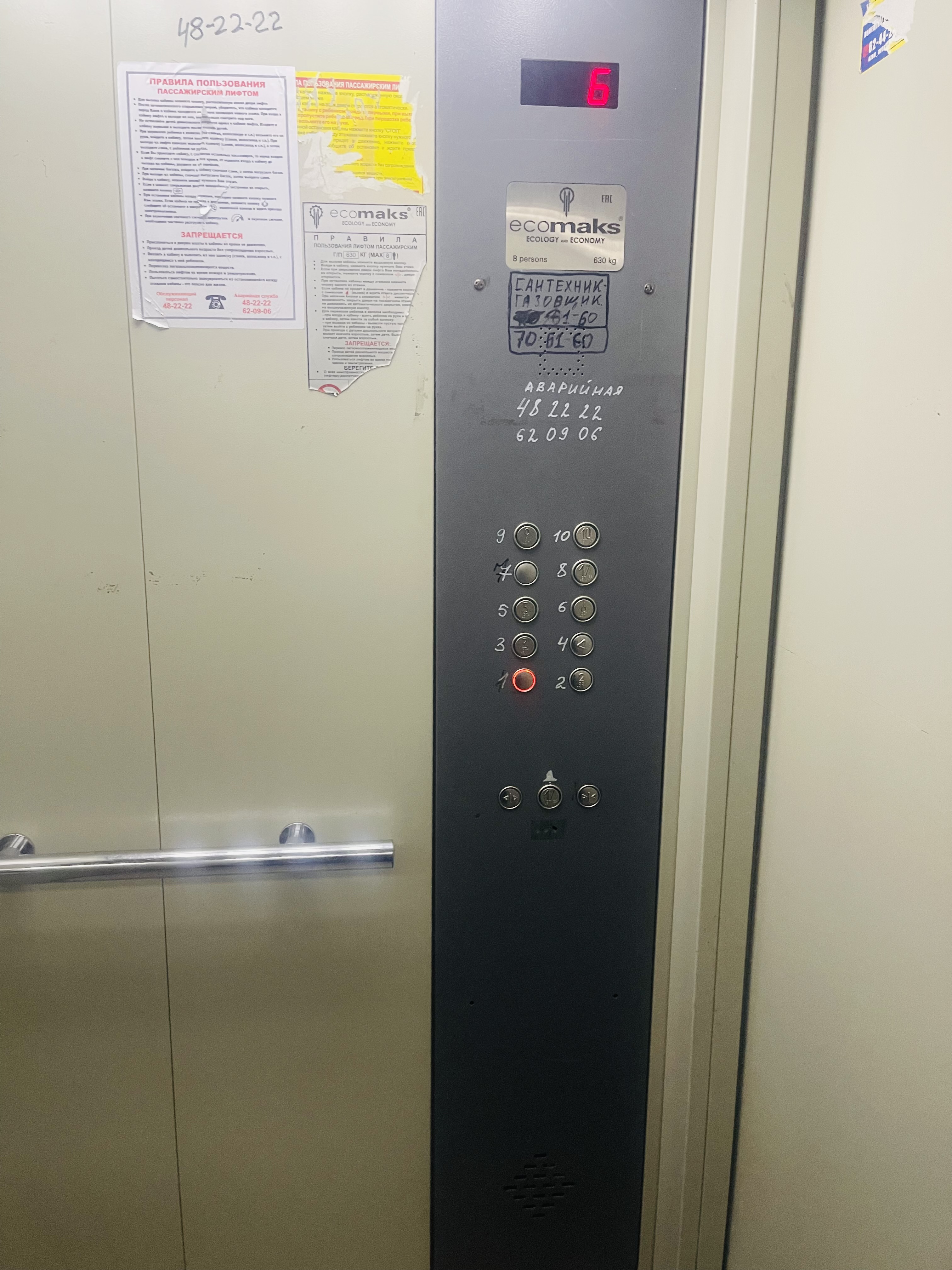- Этаж 6 из 10, пассажирский лифт.